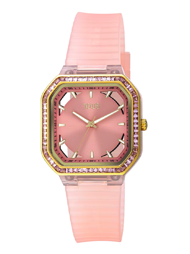 TOUS – Reloj analógico de acero IPG rosa con zirconitas Gleam Fresh 3000122400