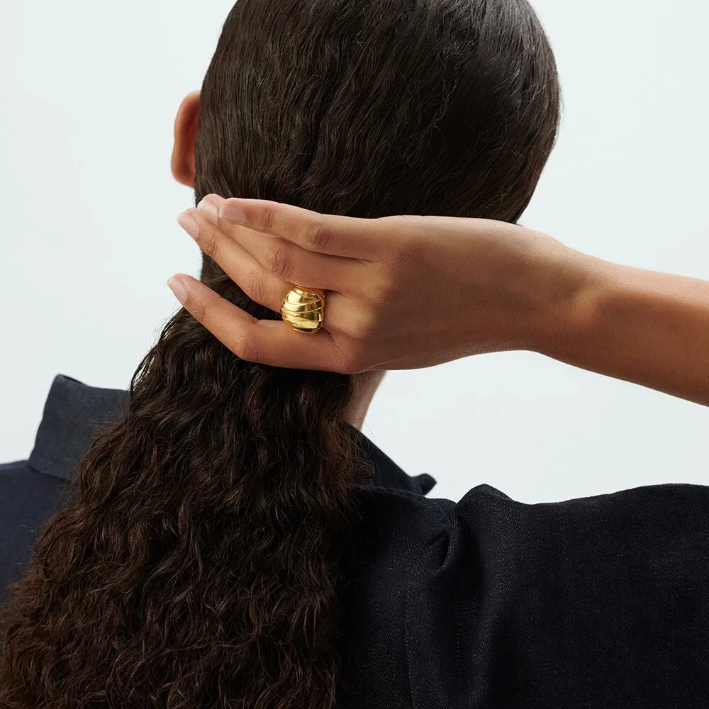 Sortija en acabado dorado con textura distintiva y circonitas brillantes incrustadas. Joya de tendencia absoluta de la colección BE by María Pombo perfecta para cualquier ocasión. Su diseño chunky definitivo aporta sofisticación y luz a tus outfits. Pieza versátil ideal como fondo de armario con auténtico estilo francés. Diseño contemporáneo que fusiona elegancia parisina con modernidad radiante.