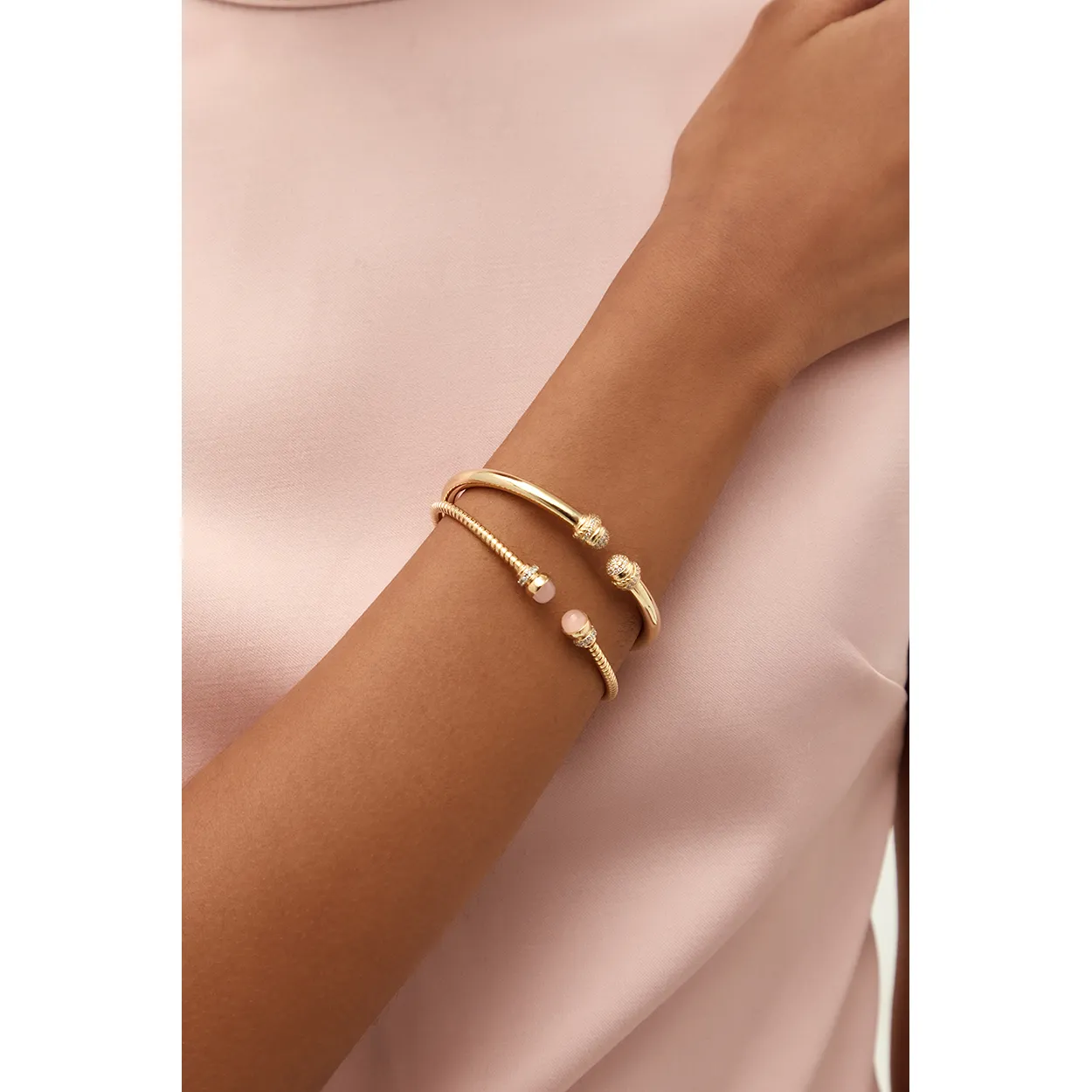 Brazalete Tubogas salomónico con piedra rosa y pavé – 513863