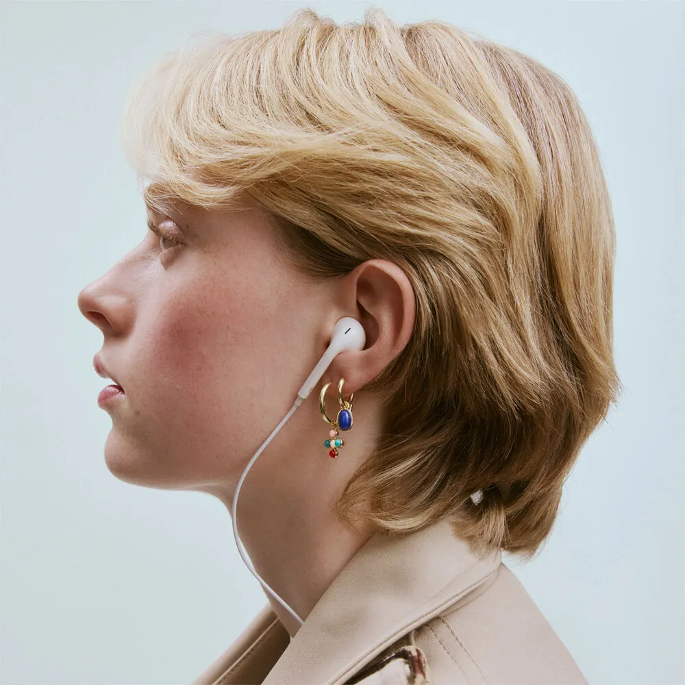 Charm en forma de cruz con baño de oro e incrustaciones de piedras naturales multicolor que aportan textura, vida y un toque orgánico muy especial. Su mezcla de espiritualidad y color lo convierte en el colgante ideal para dar contraste a conjuntos neutros o añadir un punto de energía a tu look diario. Úsalo en tus criollas, pulsera o collar Talismans de AGATHA, solo o combinado con otros charms de la colección, y crea piezas tan únicas y personales como tú misma.
