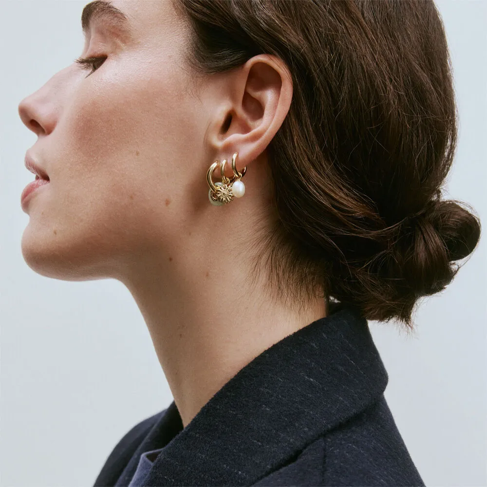 Mini charm floral con circonitas engastadas y baño de oro, con diseño reversible que ofrece dos acabados distintos en una sola pieza: el doble de posibilidades con un único colgante. Luminoso y muy femenino, aporta un destello especial a criollas, pulseras o collares de la colección Talismans de AGATHA. Perfecto para quienes buscan ese detalle brillante que eleva un conjunto sencillo sin ningún esfuerzo. Combínalo con otros charms de la colección o úsalo solo para conseguir un look delicado, lleno de luz y completamente personal.
