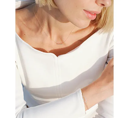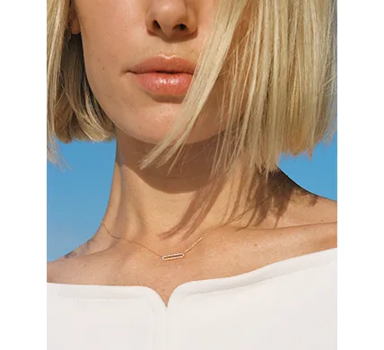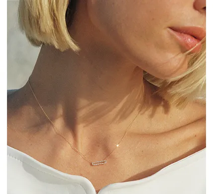 Colgante de la colección Hebilla de Le Carré, fabricado en oro de 18 quilates y engastado con diamantes naturales de 0.080 ct, color H y pureza SI. Incluye cadena de 40 + 2 cm.