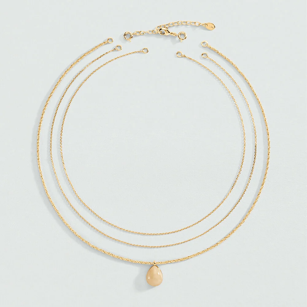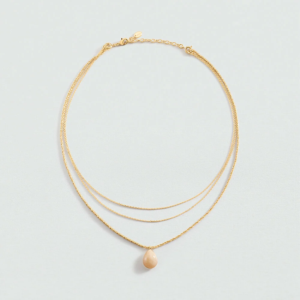 Collar Agatha Paris de la colección Madeleine con un diseño pensado para aportar estilo sin esfuerzo. Combina triple cadena dorada con gota marfil en una pieza versátil que funciona muy bien sola o como parte de un conjunto coordinado. Su estética contemporánea lo convierte en una joya fácil de integrar en el día a día, con un punto sofisticado que eleva cualquier outfit. Incluye una medida de 375 mm con alargo adicional de 50 mm para adaptarlo con comodidad. Además, sus cadenas desmontables permiten jugar con distintas formas de llevarlo.