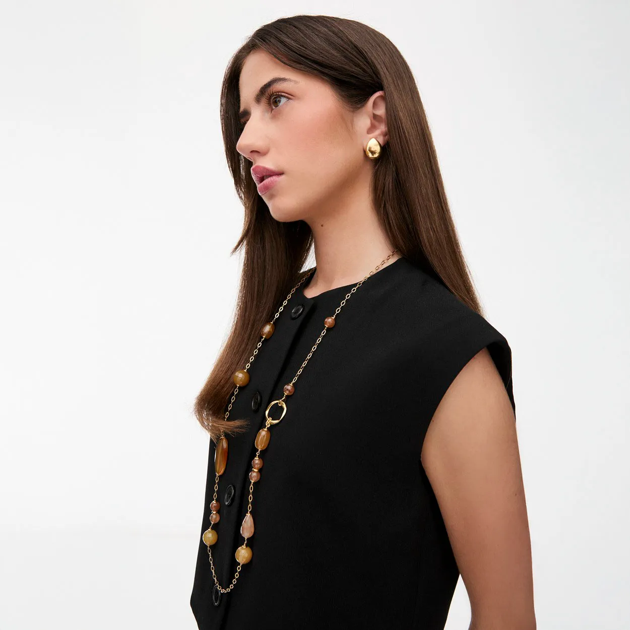 Elegante collar de Durán Exquse de la colección Pompeya, confeccionado en plata dorada y decorado con ágatas naturales. Medidas: 3 x 38 x 1,5 cm.