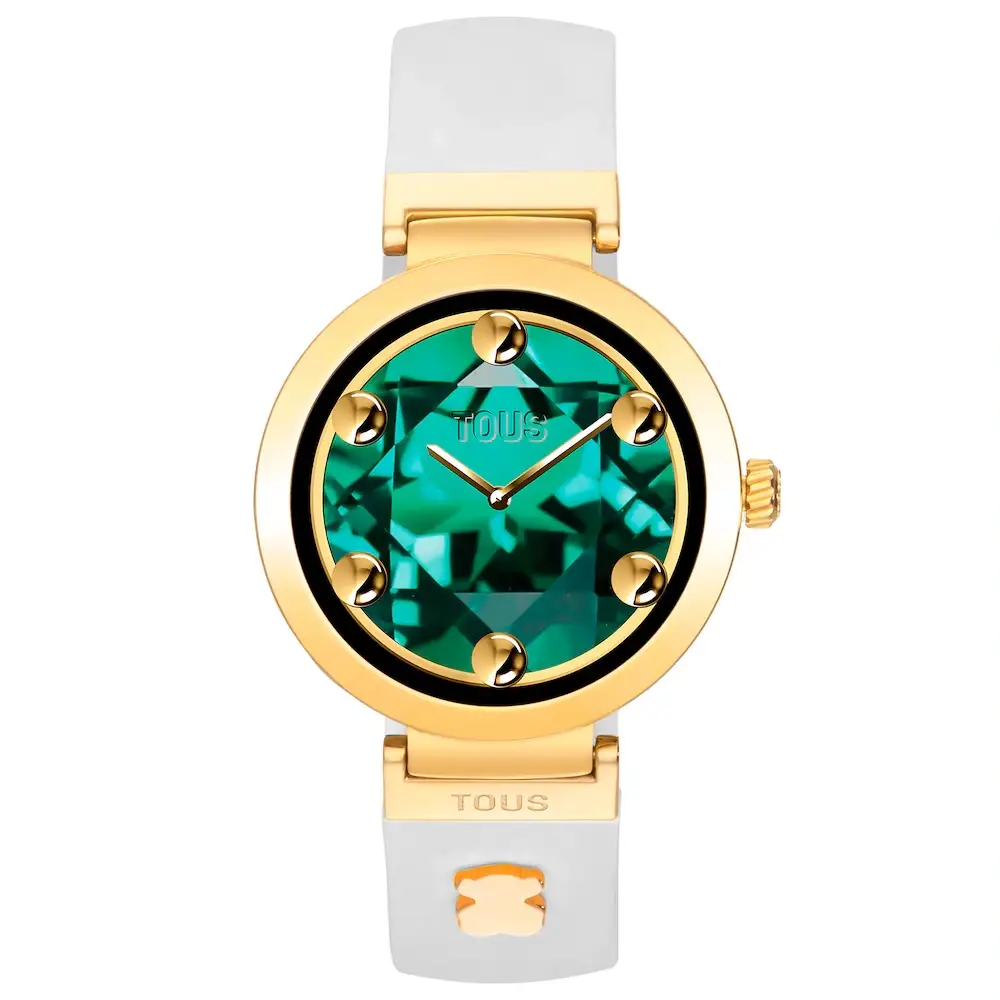Gargantilla Marina García elaborada en plata de ley (925) con un elegante baño en oro amarillo de 18Kt. Decorada con perlas cultivadas y un colgante redondo de 2 cm, cuenta con una longitud ajustable de 38 a 43 cm. Un accesorio sofisticado con un diseño atemporal.