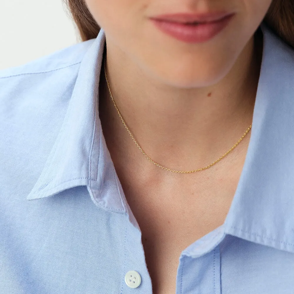Cadena midi con acabado dorado para personalizar con amuletos Lucky. Diseño forçat ligero, largo de 390 mm con extensión de 50 mm; perfecta para looks diarios y combinaciones en capas.