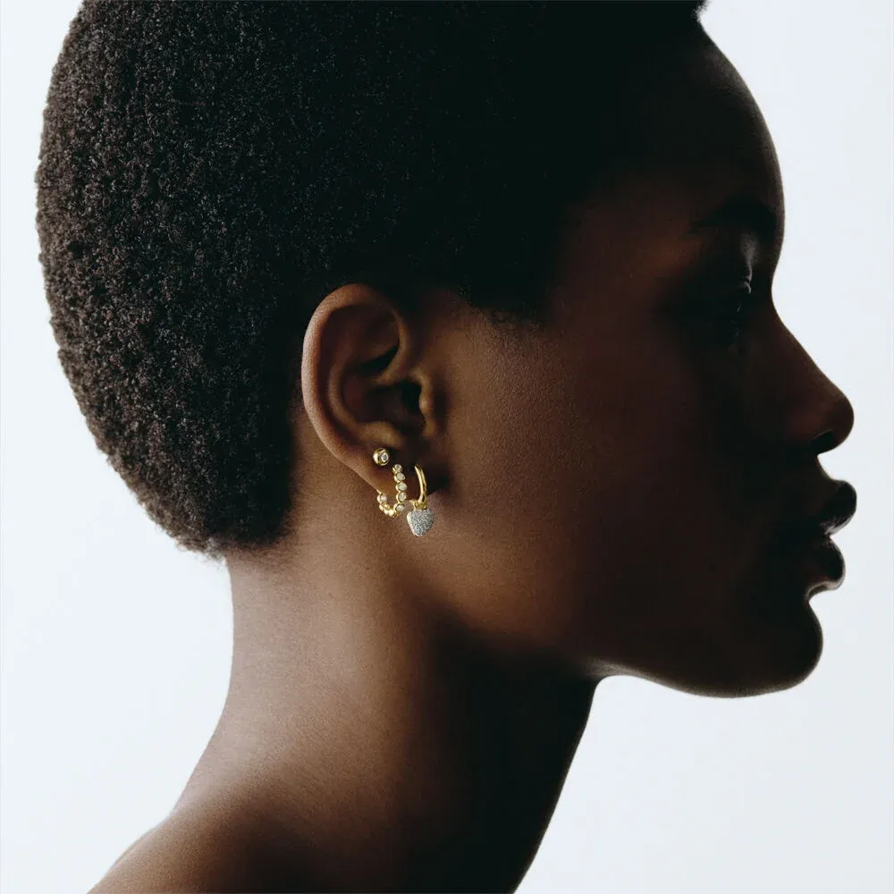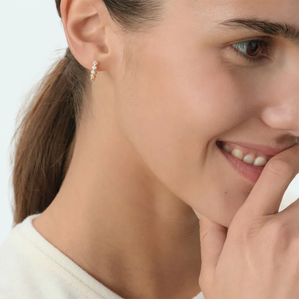 Pendientes criollas de la colección ODÉON de Agatha Paris, con acabado dorado y circonitas cristal engarzadas que aportan brillo y sofisticación. Fabricados en latón bañado en oro de 18K, su diseño aro elegante y contemporáneo los convierte en un accesorio imprescindible para el joyero de la mujer moderna. Cómodos y ligeros, van bien con cualquier estilismo, desde el más casual hasta el más formal. Una joya atemporal que captura la esencia del savoir-faire parisino de Agatha Paris.