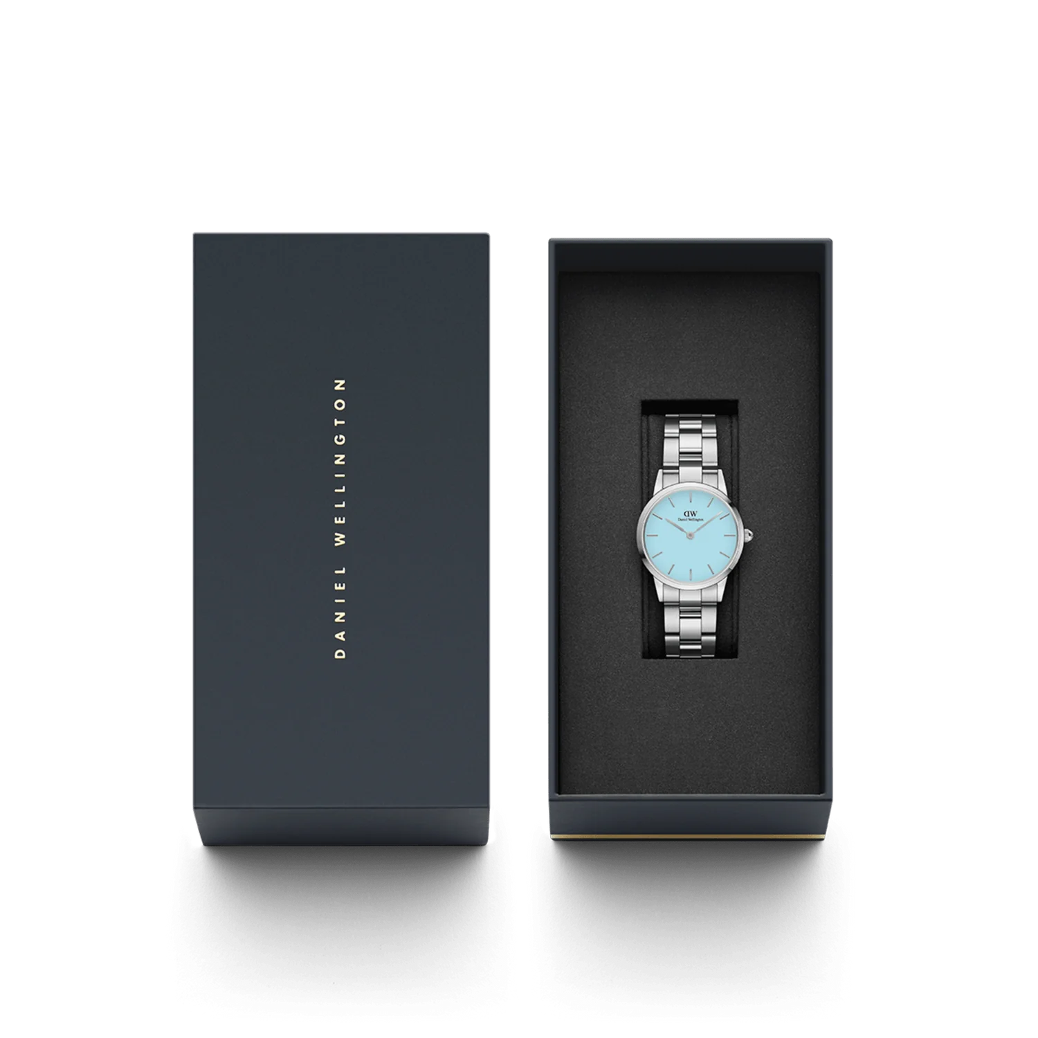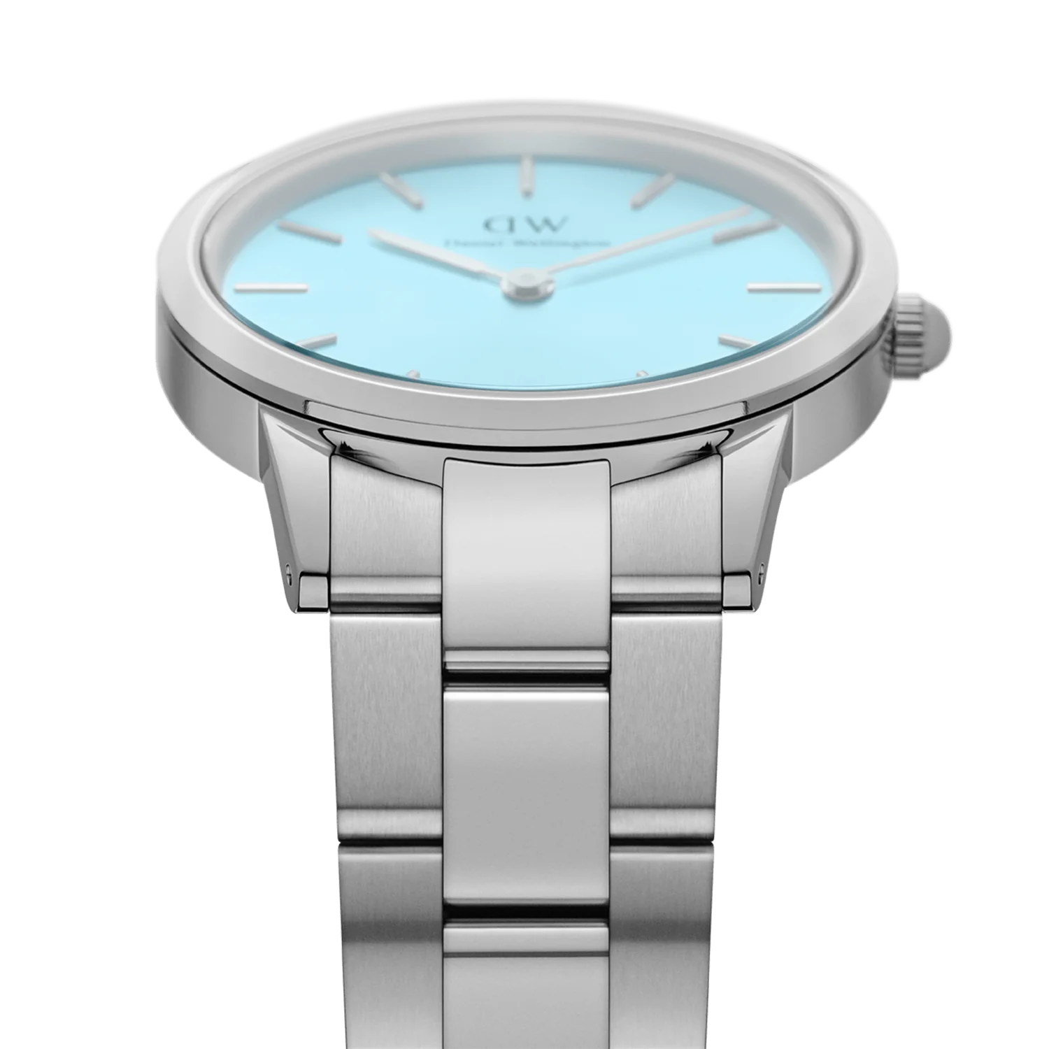 El Iconic Link Capri llama inmediatamente la atención con su esfera de reloj azul. El tono pastel evoca los cielos azules de Capri en los elegantes años 80. Fabricado con acero inoxidable y disponible con un elegante acabado plateado. A pesar de su estilo retro, este diseño audaz se siente claramente moderno. Con una esfera azul cielo, el Iconic Link Capri se siente como un soplo de aire fresco. Su diseño nítido le da un toque moderno al estilo playero de los años 80. Por ejemplo, la correa del reloj de acero inoxidable, con un acabado plateado, equilibra a la perfección la colorida esfera semimate. Por lo tanto, úsalo con confianza y dale a tus atuendos un toque divertido pero elegante.