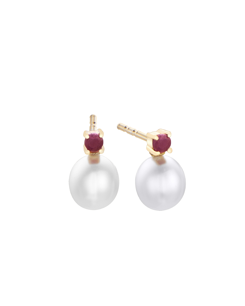 Pendientes de Durán Exquse de la colección Pearl de plata dorada con perla y rubí