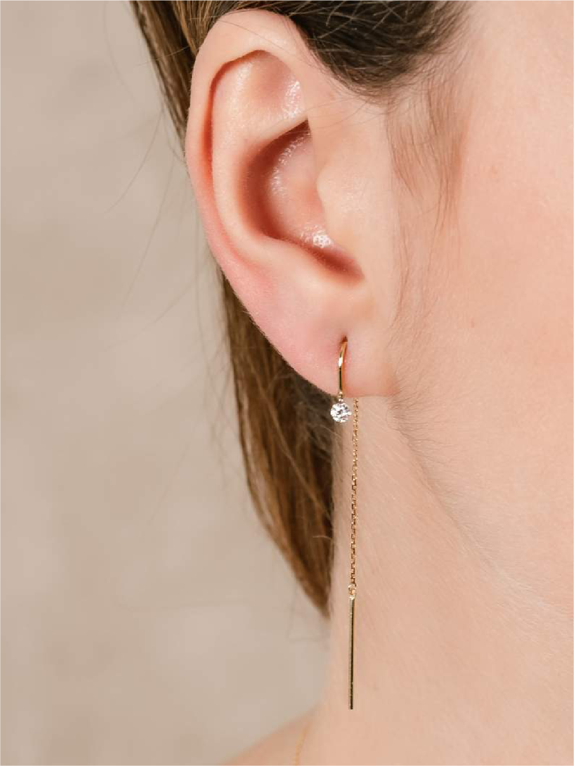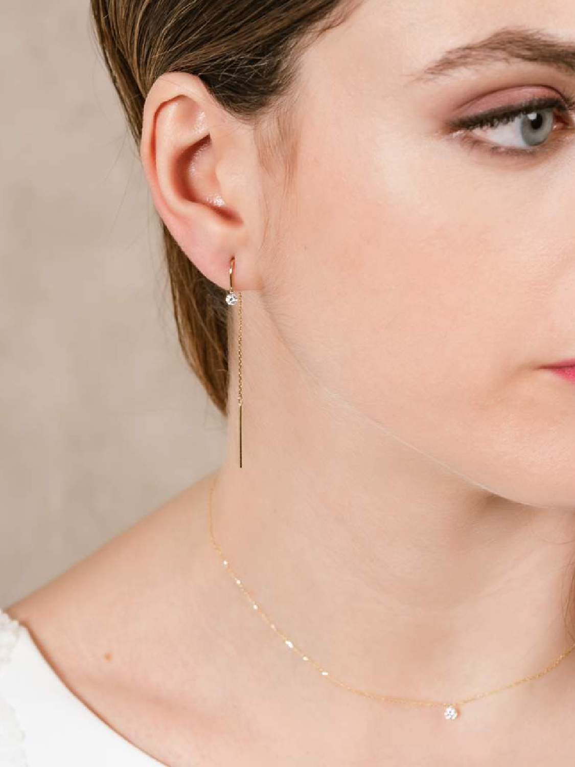 Marina García – Pendientes largos BALLERINA Oro amarillo 18Kt Y diamantes 0,14 qt