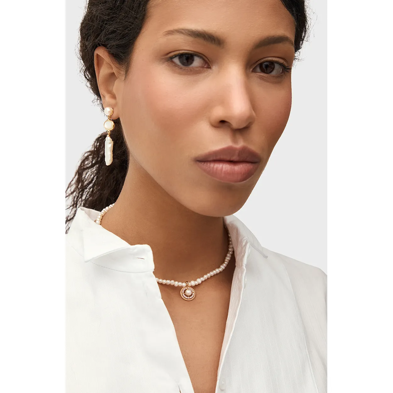 Pendientes de Pedro Durán con una estética sofisticada y actual, ideales para dar protagonismo al rostro tanto en looks cotidianos como en ocasiones especiales. Este diseño destaca por triple composición, madreperla, perla barroca, con un acabado dorado que aporta luz y versatilidad. Su silueta está pensada para conseguir presencia sin renunciar a la elegancia, convirtiéndolos en una pieza fácil de combinar con otras joyas de la colección. Una propuesta muy especial para quien busca unos pendientes con personalidad, estilo mediterráneo y un aire contemporáneo.