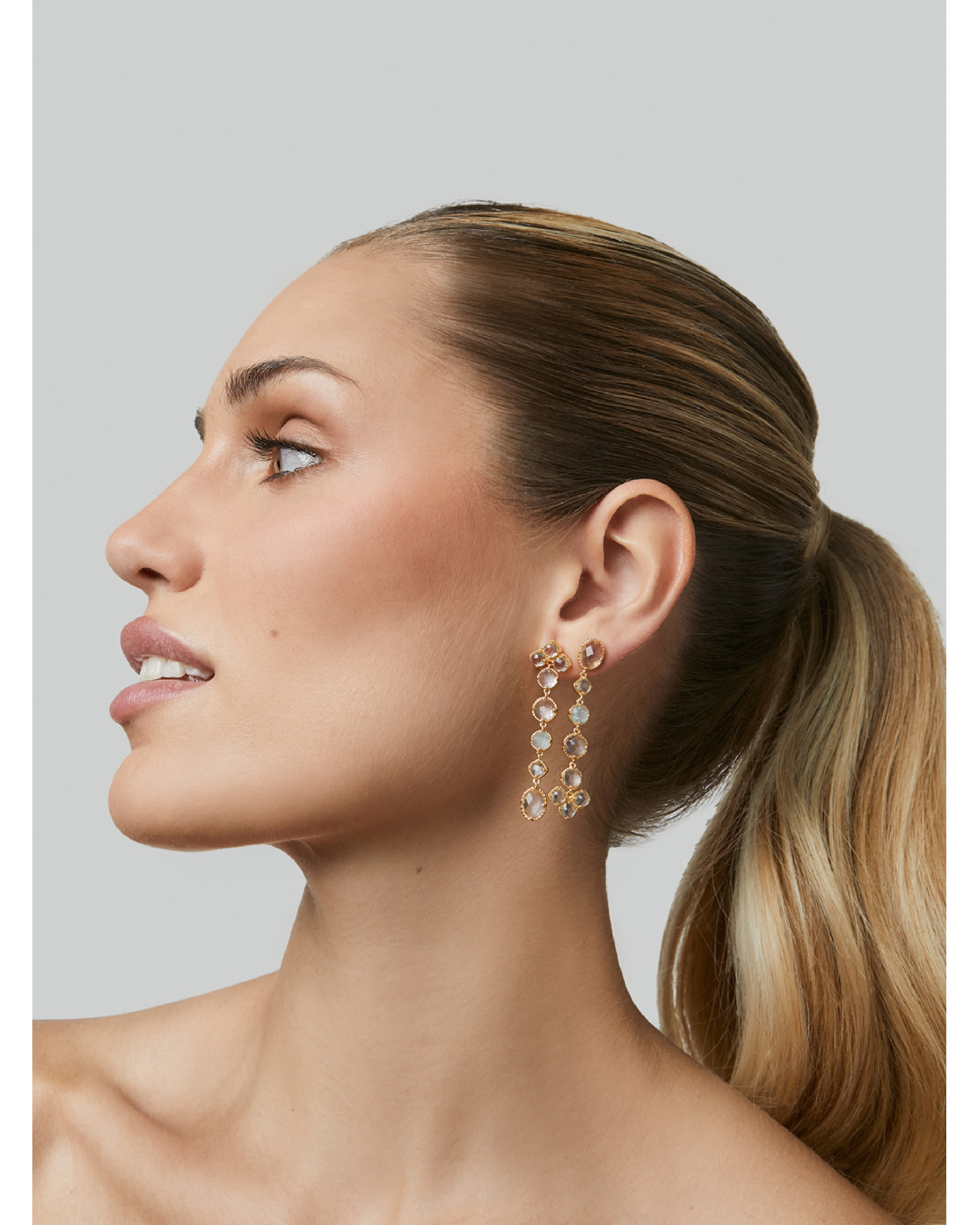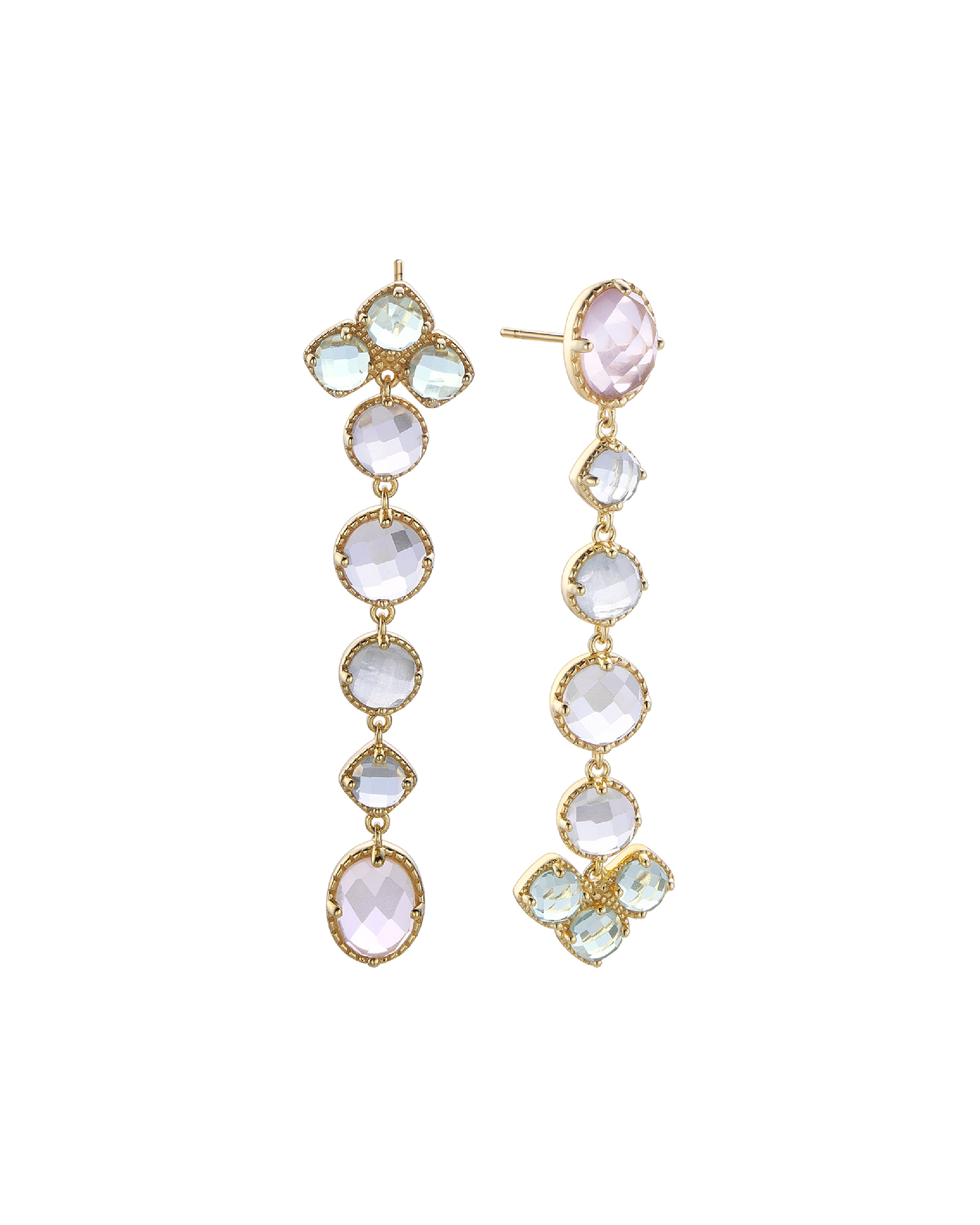 Pendientes de Durán Exquse de la colección Edición Limitada de plata dorada con topacio sky blue, aguamarina y cuarzo rosa