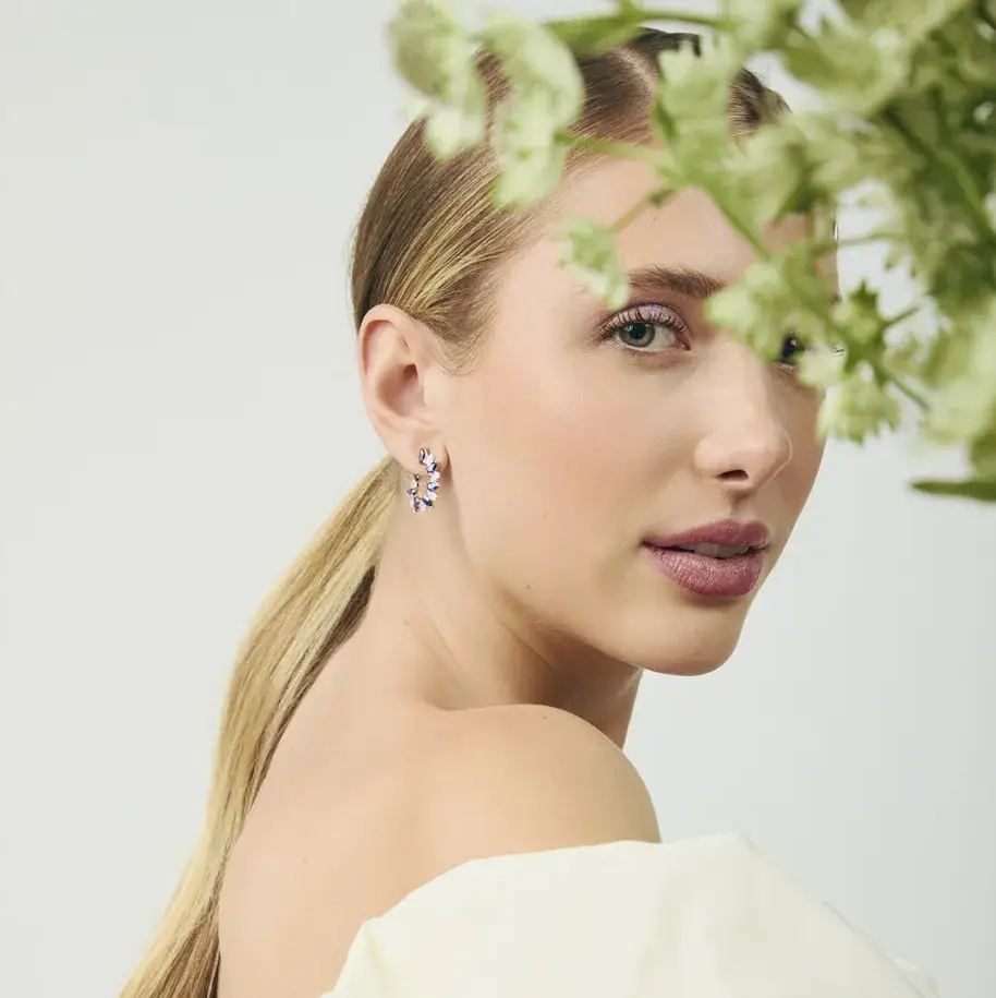 Diseño clásico y luminoso: pendientes de la colección Sposata de Durán Exquse en plata con acabado rodio y engastados con circonitas. Una joya versátil para tu día a día.