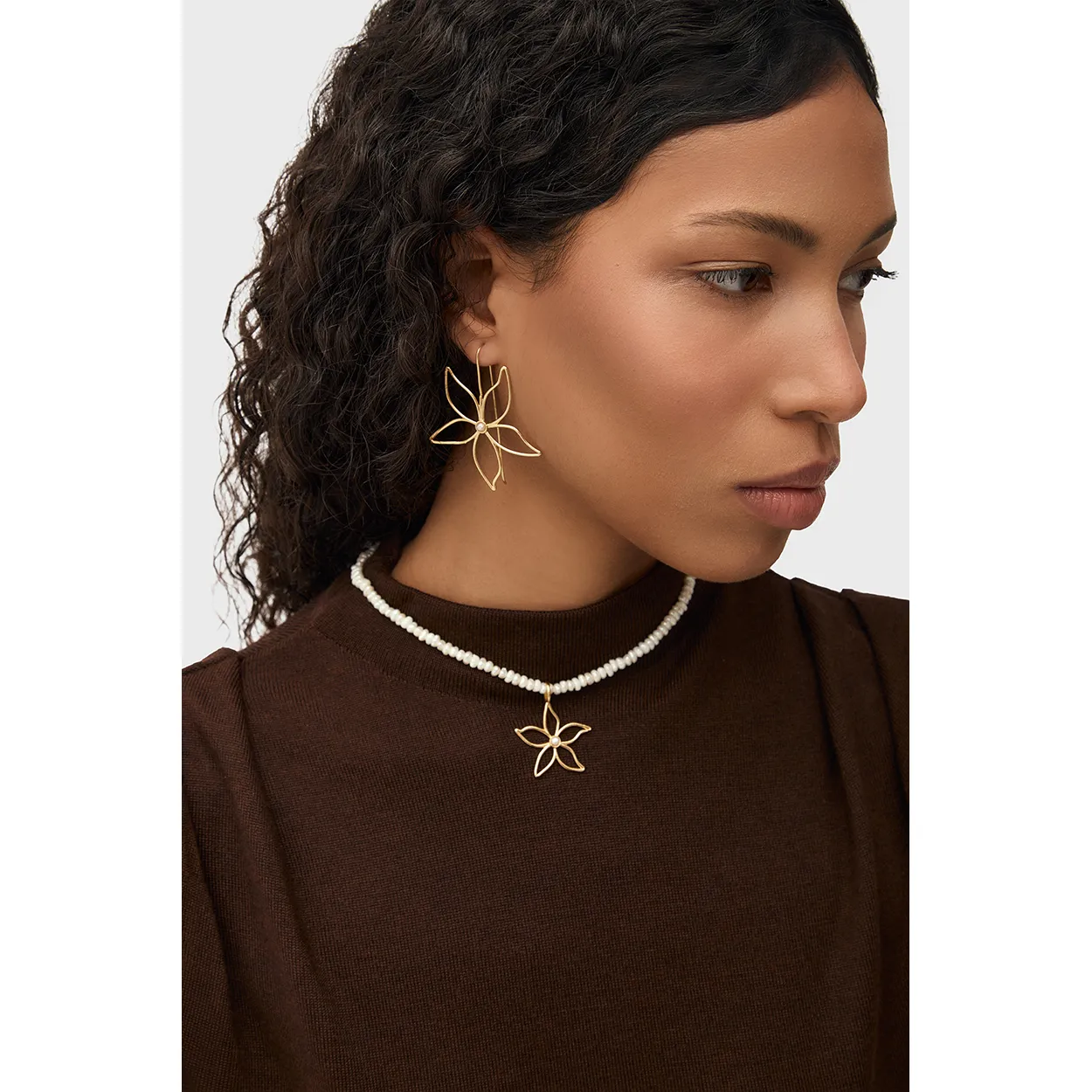 Pendientes de Pedro Durán con una estética sofisticada y actual, ideales para dar protagonismo al rostro tanto en looks cotidianos como en ocasiones especiales. Este diseño destaca por motivo jazmín, perla, diseño oversize, con un acabado dorado que aporta luz y versatilidad. Su silueta está pensada para conseguir presencia sin renunciar a la elegancia, convirtiéndolos en una pieza fácil de combinar con otras joyas de la colección. Una propuesta muy especial para quien busca unos pendientes con personalidad, estilo mediterráneo y un aire contemporáneo.