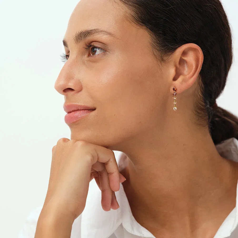 Los pendientes largos Lutetia de Agatha Paris en tono marrón dorado incorporan circonitas en degradado sobre una estructura acabada en oro. Su silueta estilizada alarga visualmente el cuello y aporta un toque sofisticado, muy en línea con las tendencias que apuestan por los tonos tierra. Son ligeros y cómodos de llevar, lo que permite lucirlos durante horas sin renunciar al confort.