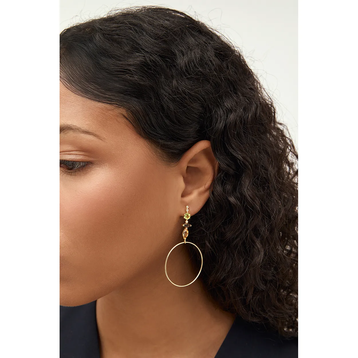 Pendientes de Pedro Durán con una estética sofisticada y actual, ideales para dar protagonismo al rostro tanto en looks cotidianos como en ocasiones especiales. Este diseño destaca por peridoto, cuarzo ahumado, citrino, con un acabado dorado que aporta luz y versatilidad. Su silueta está pensada para conseguir presencia sin renunciar a la elegancia, convirtiéndolos en una pieza fácil de combinar con otras joyas de la colección. Una propuesta muy especial para quien busca unos pendientes con personalidad, estilo mediterráneo y un aire contemporáneo.