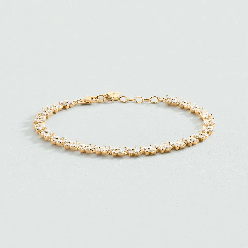 La pulsera de cadena Beloved de Agatha Paris está realizada en plata de ley con baño de oro y delicadas circonitas en forma de flor distribuidas a lo largo de la pulsera. Su tamaño ajustable permite adaptarla a la muñeca con comodidad, creando un hilo de destellos dorados y cristalinos que acompaña cualquier movimiento. Es una pieza romántica y femenina, perfecta para regalar o para completar un conjunto de la colección Beloved.