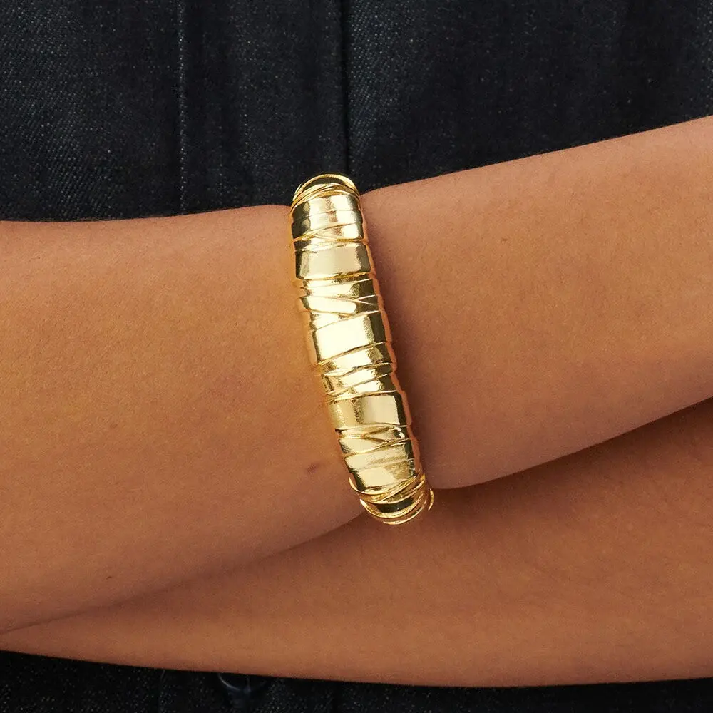 Brazalete abierto en tono dorado con textura exclusiva de la colección BE by María Pombo para Agatha Paris. Esta pieza se ha consolidado como una tendencia absoluta que salvará todos tus estilismos. Diseño chunky que aporta carácter y personalidad definitiva a cualquier outfit. Joya versátil perfecta como fondo de armario, ideal para llevar en tu día a día, a la oficina, en tus momentos más especiales o cuando quedas con tus amigas. Fabricada con materiales de primera calidad con sello parisino.