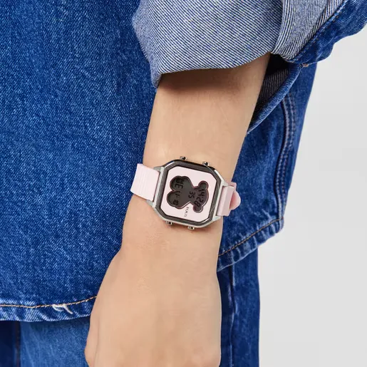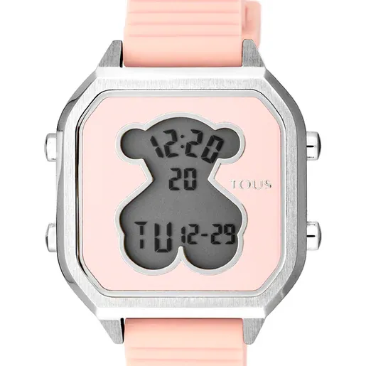 Reloj digital TOUS D-Bear Teen en acero con correa de silicona rosa. Diseño juvenil y cómodo para el día a día. Ideal para añadir un toque de color a tu estilo.