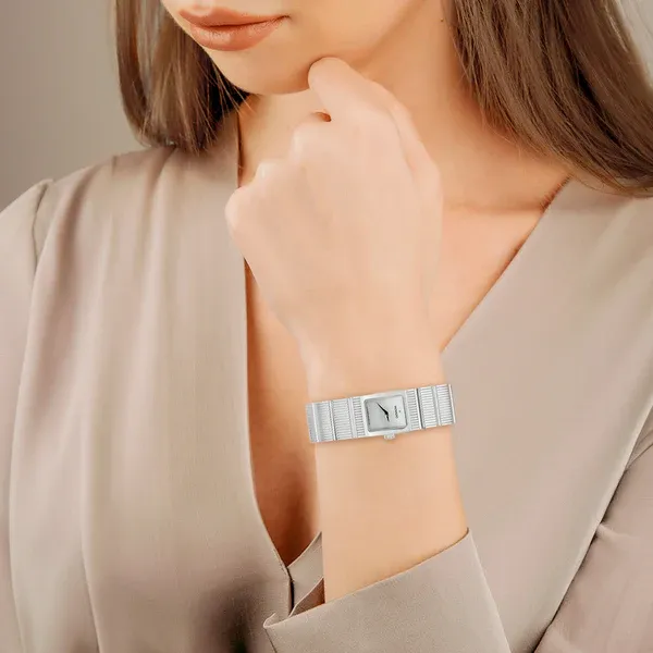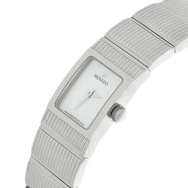 Reloj de pulsera Movado Concerto para mujer, diseñado con un estilo clásico y elegante. Caja de acero inoxidable de 17 mm en color plata con cristal mineral K1 resistente a arañazos. Movimiento de cuarzo suizo con funciones de horas y minutos. Esfera blanca sin marcas de hora. Pulsera de acero inoxidable con cierre tipo pulsera. Resistente al agua hasta 30 metros. Ideal para un look formal, casual o de lujo. Fabricado en Suiza. Garantía de 2 años por WatchWarehouse.