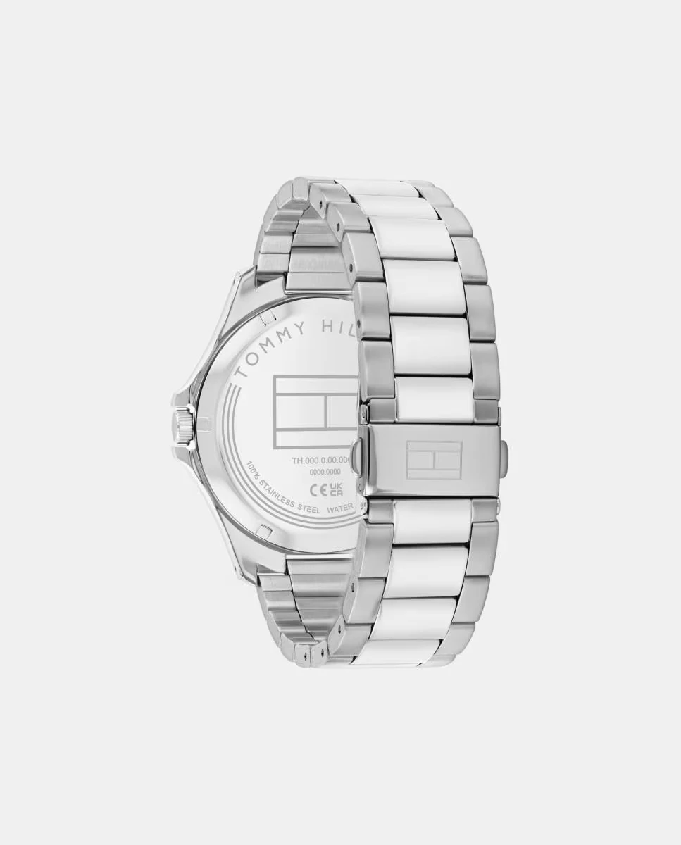 Reloj Tommy Hilfiger de la colección Bruce para hombre con una estética elegante y actual. Incorpora caja de acero inoxidable de 43 mm y esfera verde. Funciona con cuarzo con cronógrafo y está protegido por cristal mineral. Se completa con brazalete de acero inoxidable plateado y ofrece una resistencia al agua de 3 ATM. Su diseño combina funcionalidad y presencia, ideal para quienes quieren un reloj con detalles técnicos visibles y un acabado cuidado. Aporta personalidad sin renunciar a la funcionalidad y mantiene el estilo reconocible de la marca en un formato práctico.