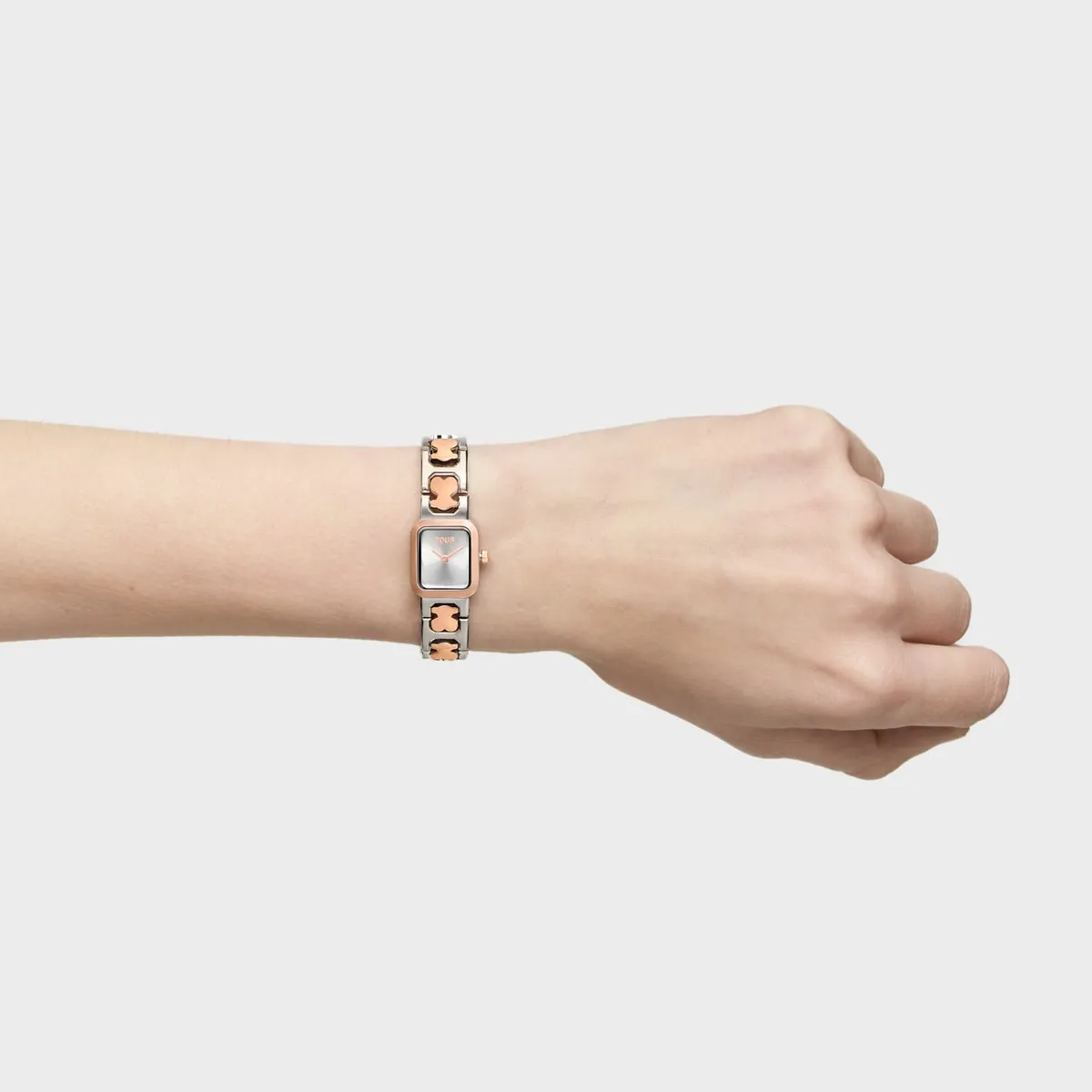 Reloj analógico TOUS Icon Time con brazalete bicolor (acero y acero rosado), cuarzo y 3 ATM. Look atemporal con estética de joya.