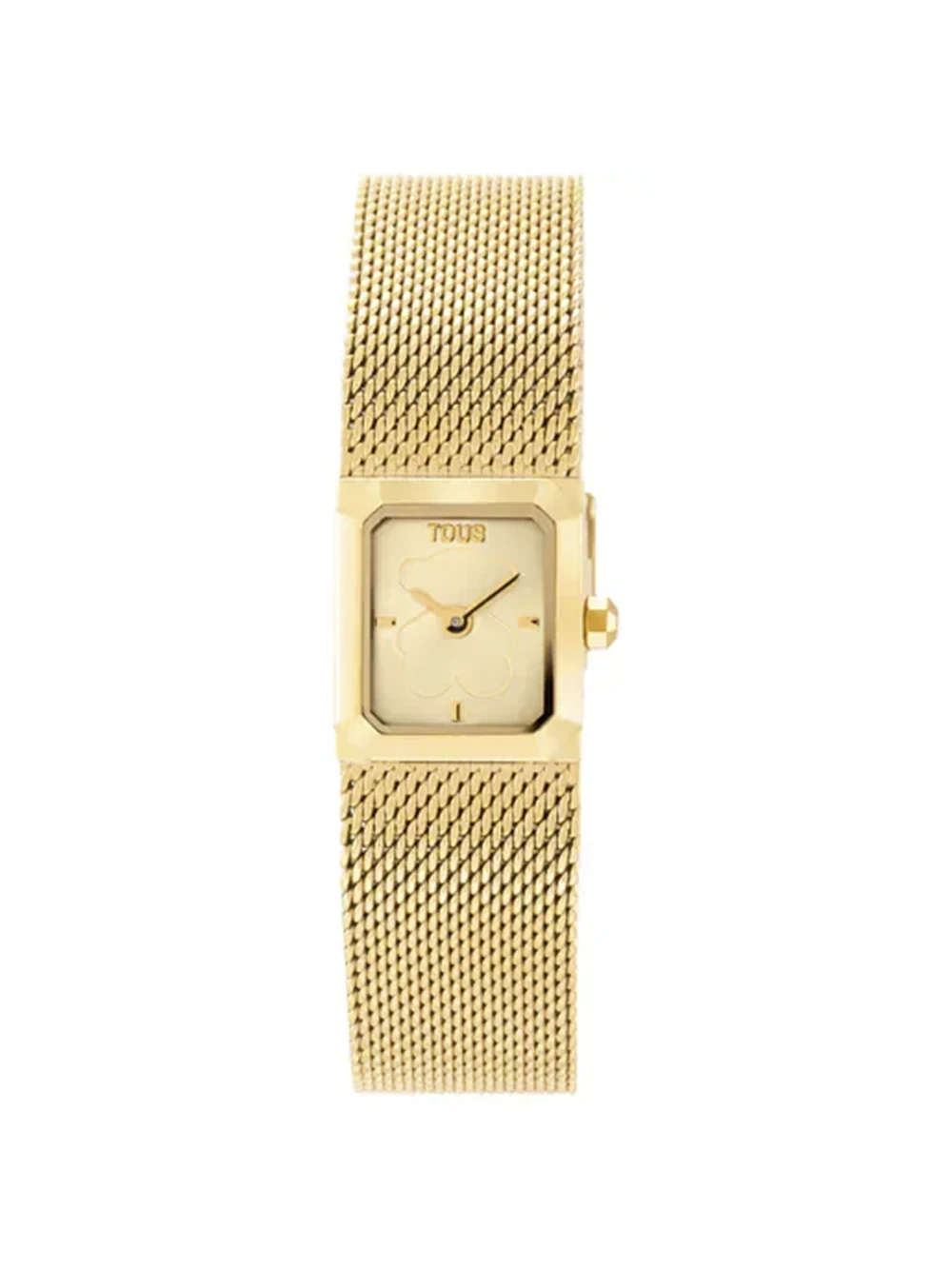 Elegante reloj analógico TOUS Mini Mesh con brazalete de malla milanesa en acero dorado. Su caja octogonal y cristal mineral plano le aportan un toque moderno y sofisticado. Ofrece funciones de hora y minutos, con resistencia al agua de hasta 3 ATM. El brazalete ajustable con cierre de seguridad asegura una comodidad perfecta.