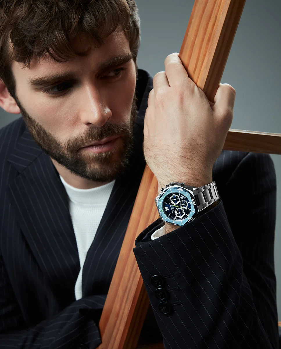 Diseñado para el hombre contemporáneo que valora la versatilidad: un reloj que transita sin esfuerzo entre tu rutina deportiva y compromisos profesionales, manteniendo siempre un aspecto impecable.