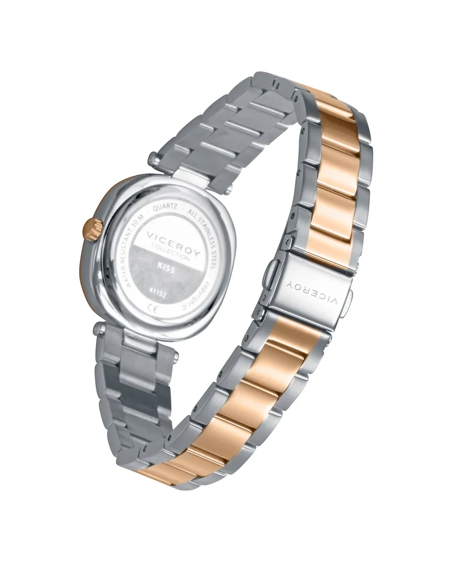 La sofisticación se viste de rosa con este reloj Viceroy de diseño singular. Su caja de acero con forma especial y acabado bicolor IP rosado rompe con lo convencional, mientras la esfera gris de 31 mm aporta un contraste elegante y contemporáneo.