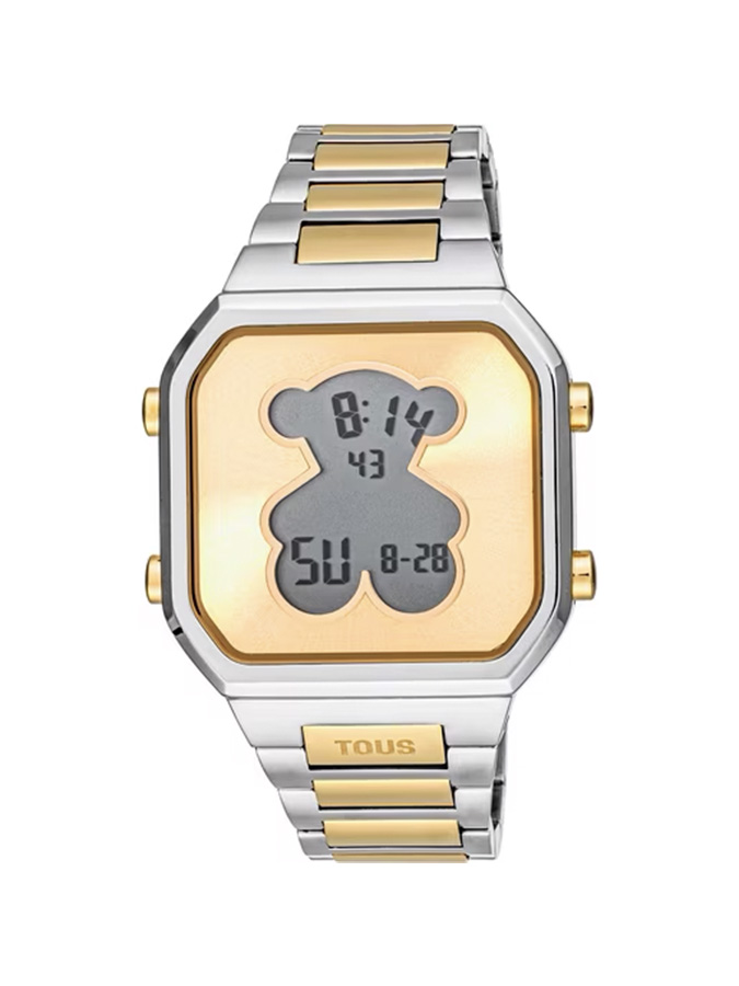 TOUS D-BEAR Reloj digital con brazalete de acero dorado IPG y acero SS