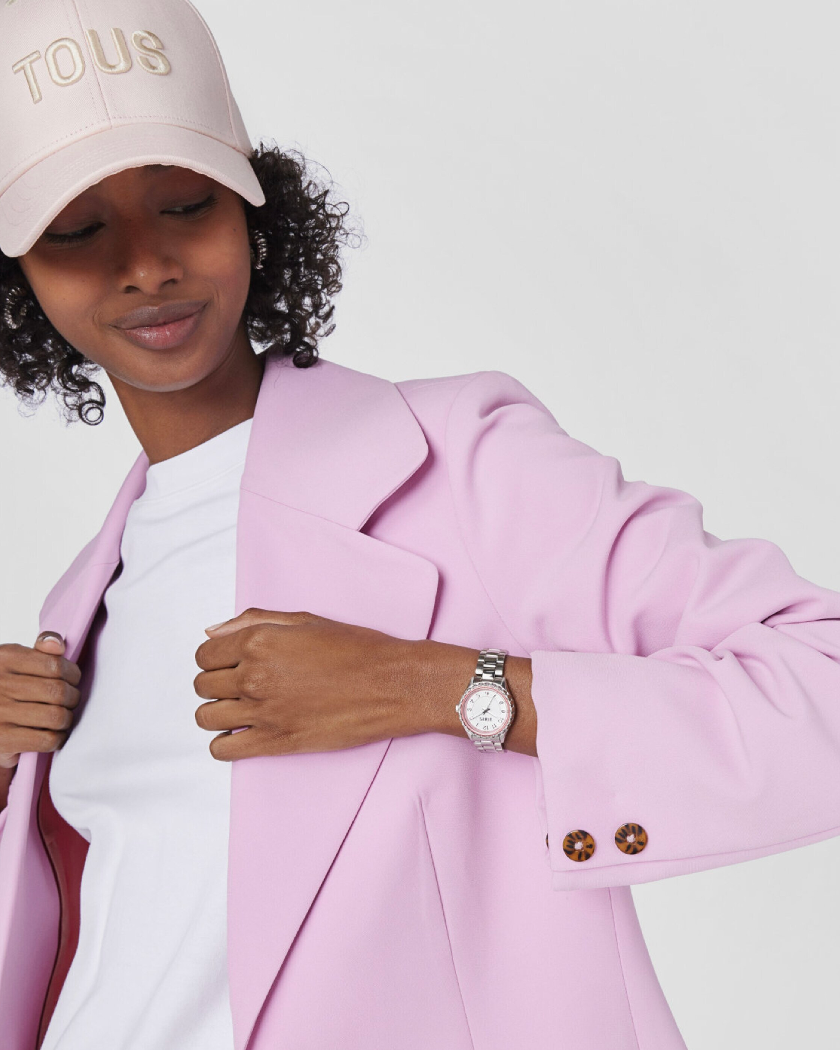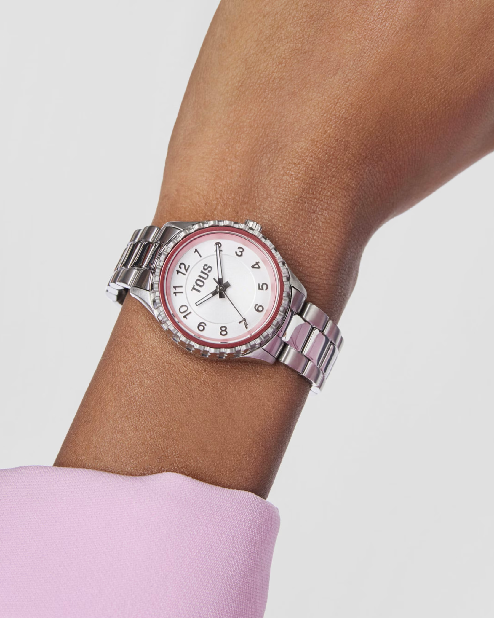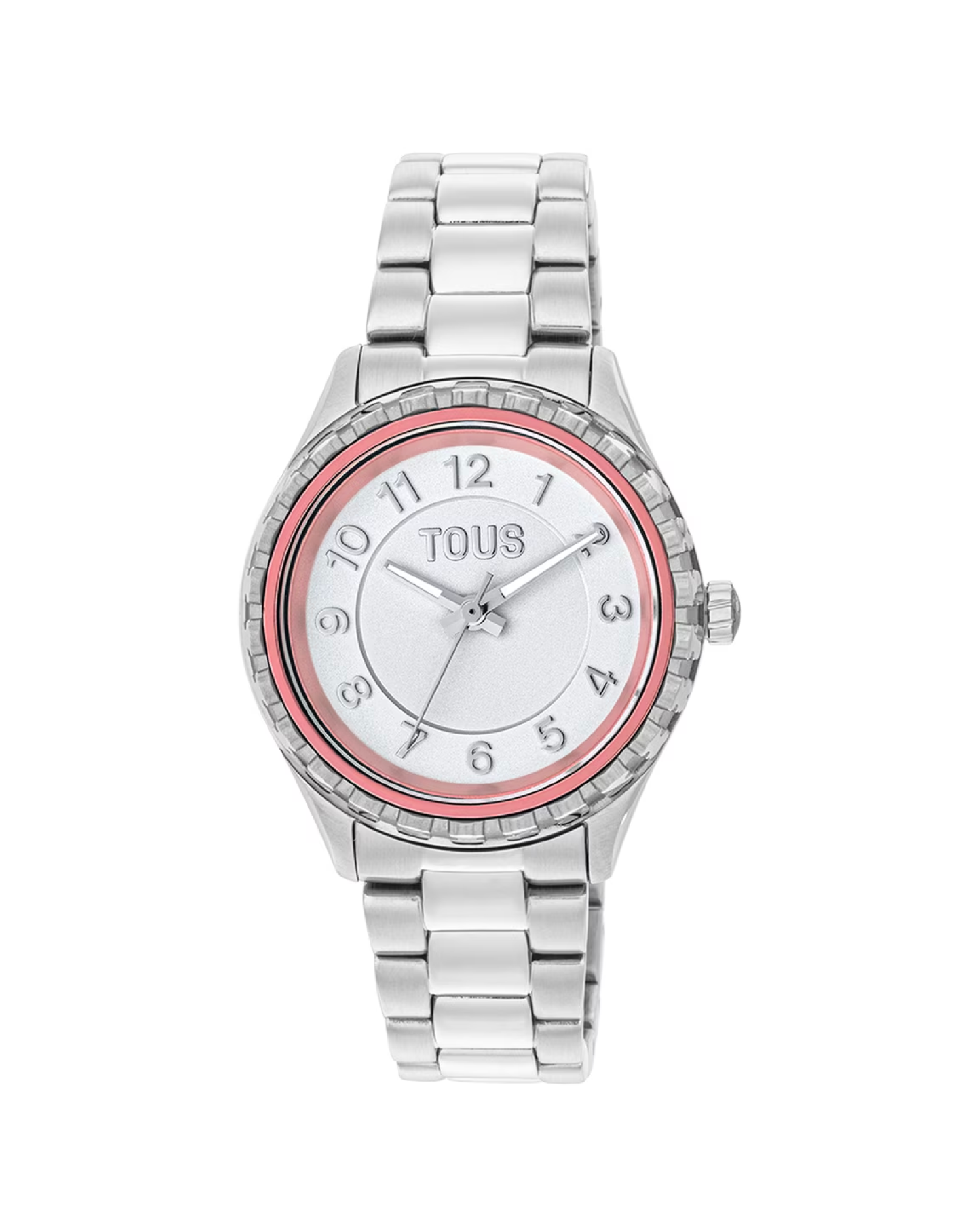 TOUS – Reloj analógico con brazalete de acero y bisel interior de aluminio rosa Mini T-Bear