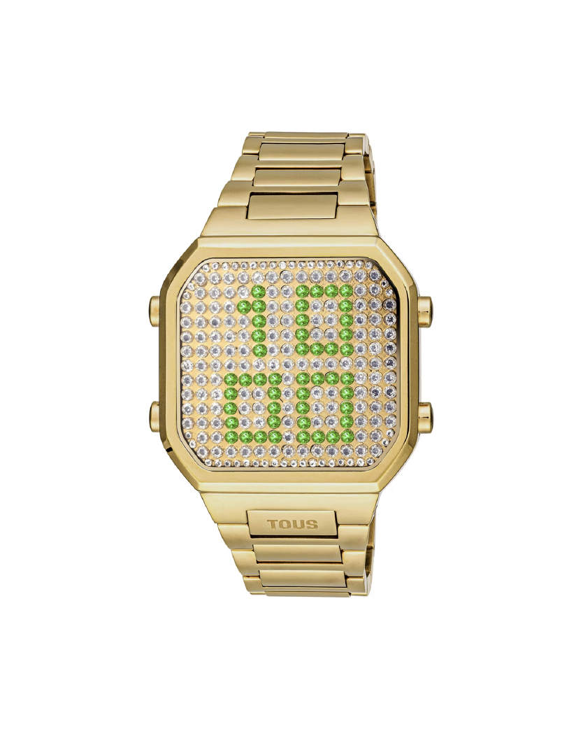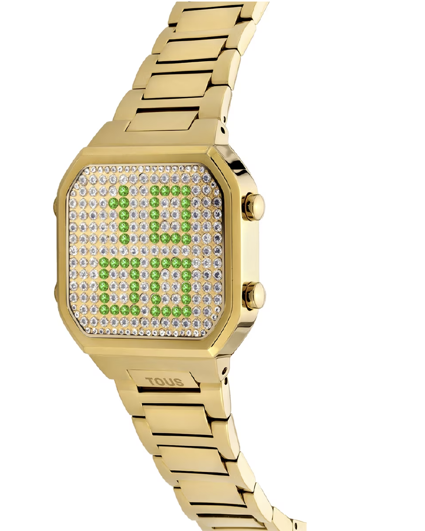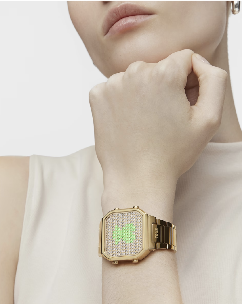 TOUS – Reloj digital con brazalete de acero IPG dorado y caja con leds D-BEAR