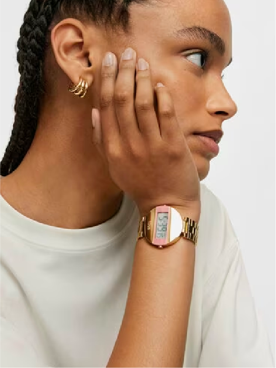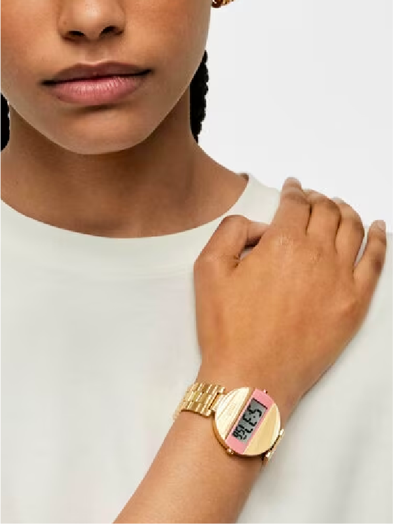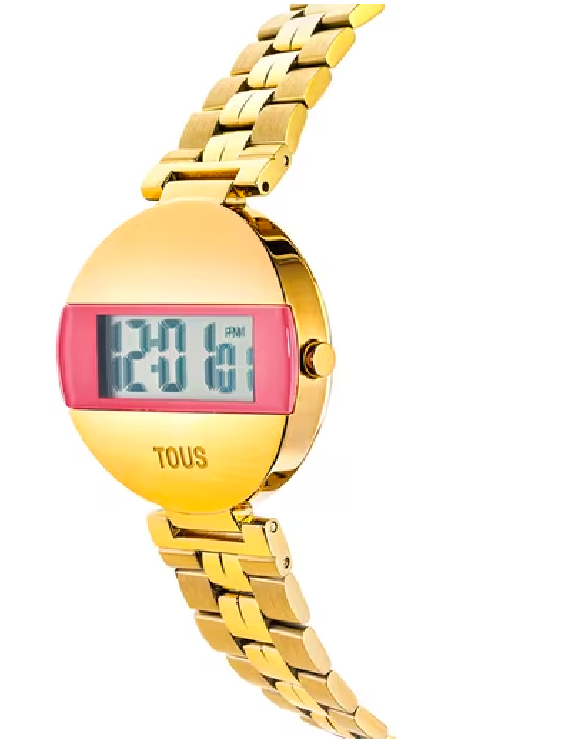 TOUS – Reloj digital con brazalete de acero IPG dorado y color rosa MARS