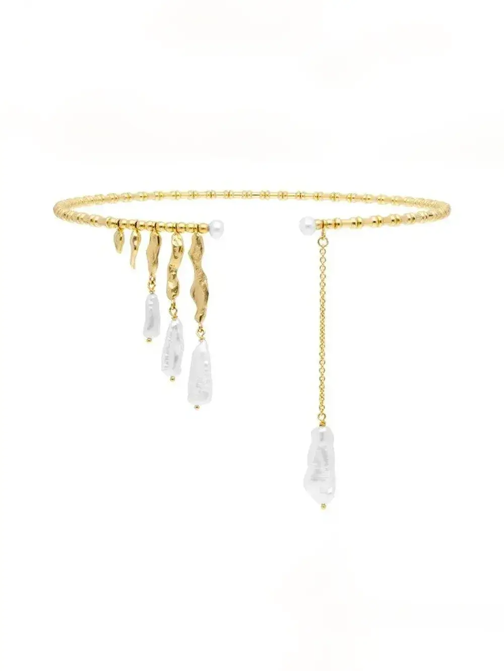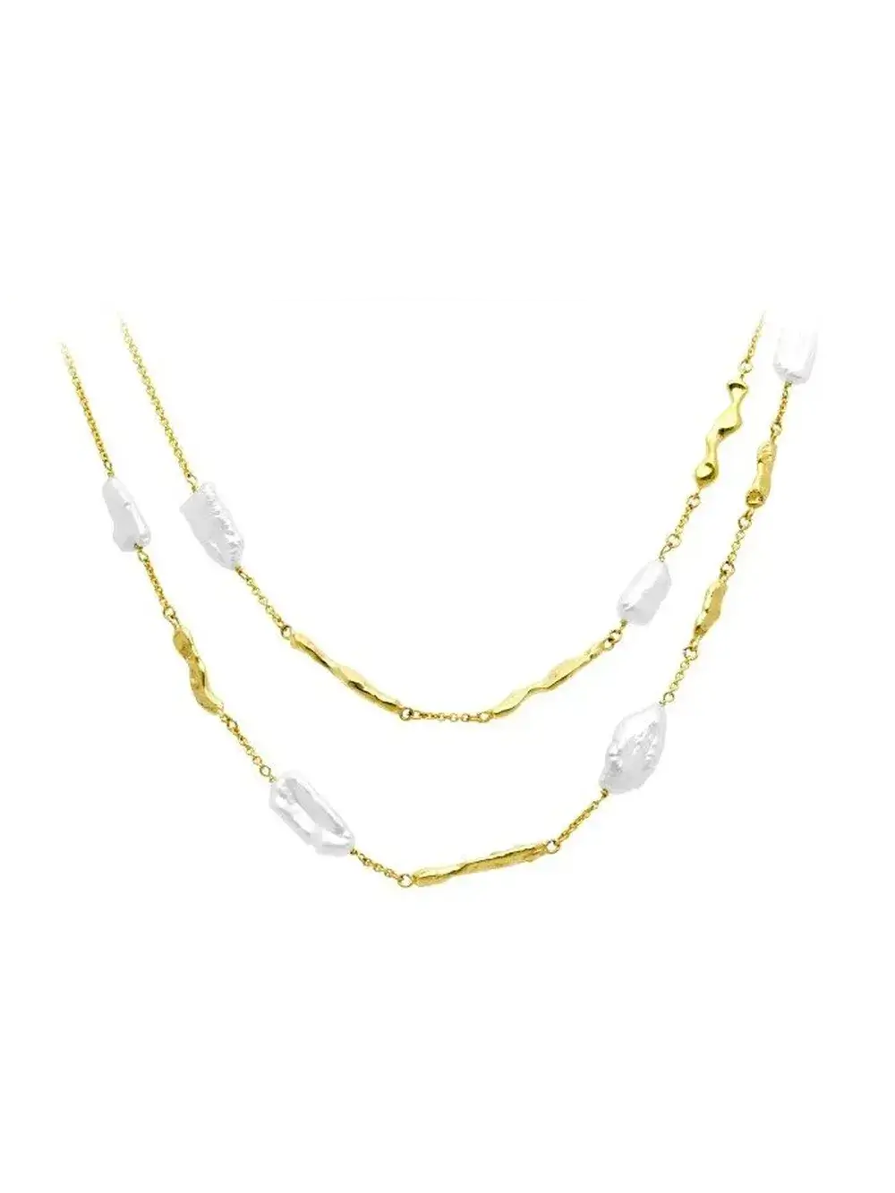 Collar Marina García de perlas y chapa redonda en plata dorada 90823GD