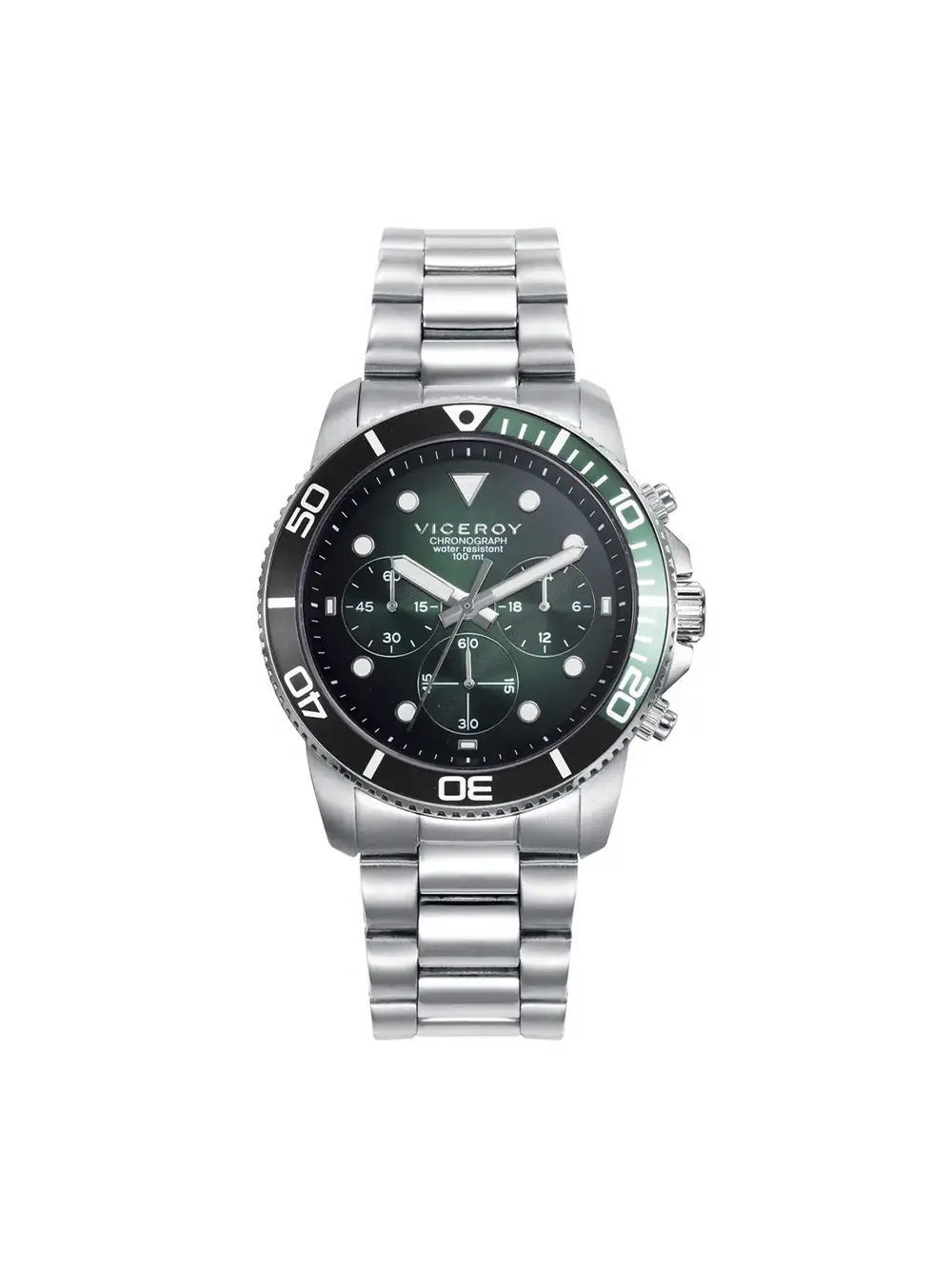 Reloj Viceroy cronógrafo de acero con bisel verde y negro 42453-77